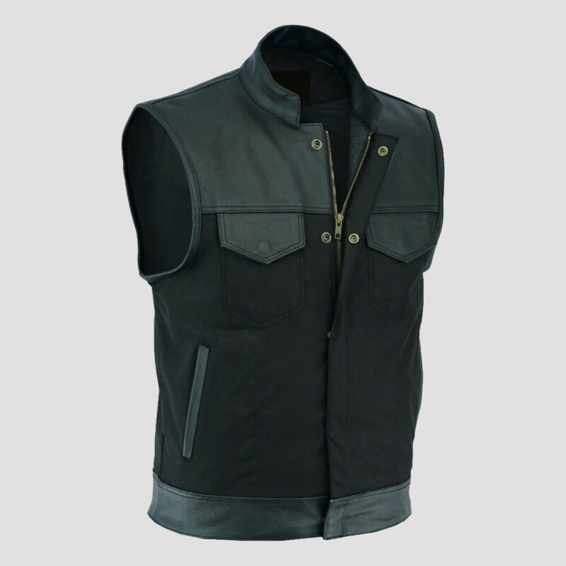 Anarchy Black Leather Motorcycle Club Vest