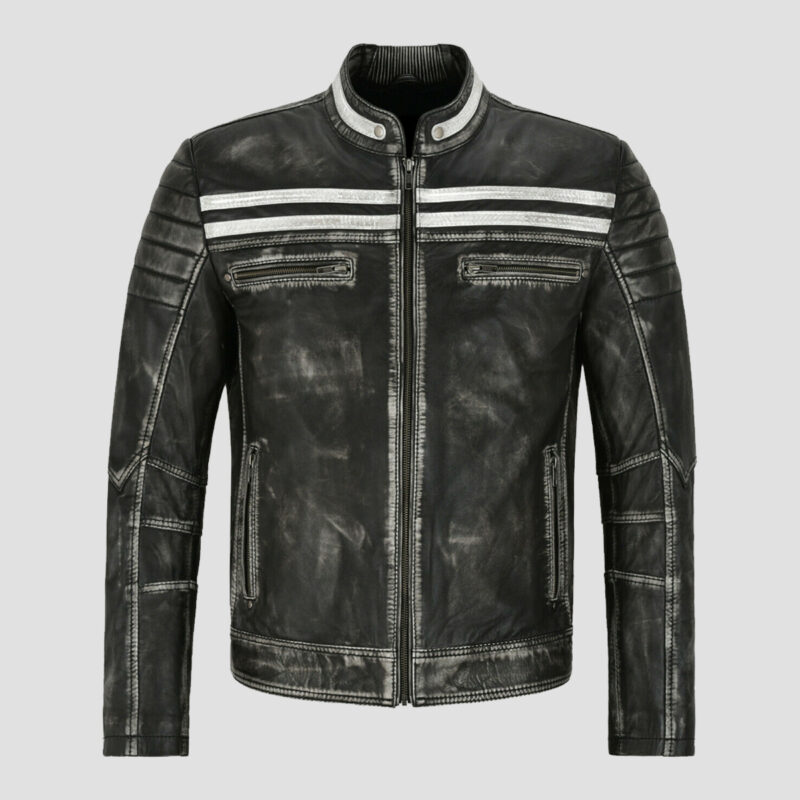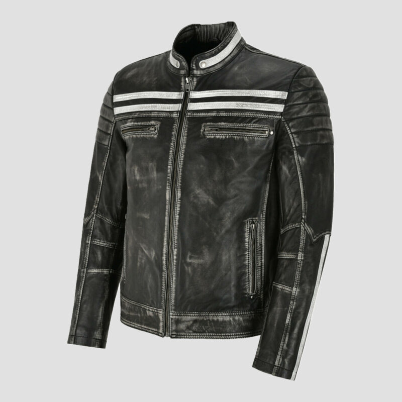 Alex Distressed Black Leather Biker Jacket