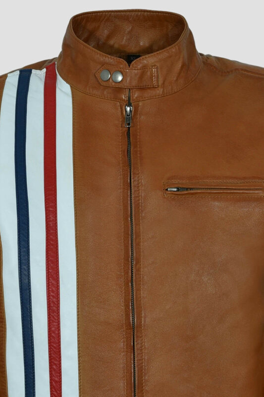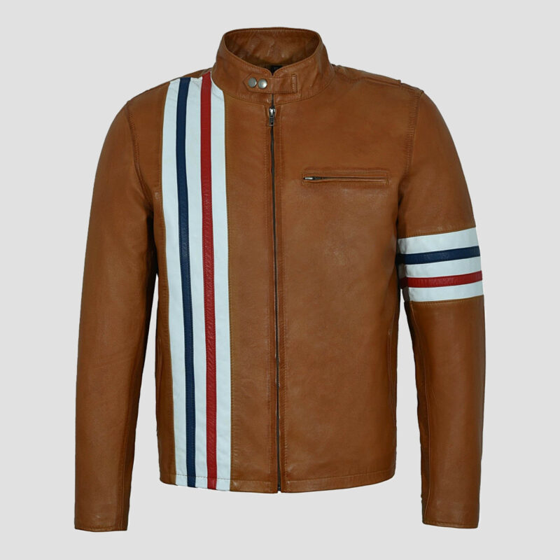 American Flag Stripes Tan Leather Jacket