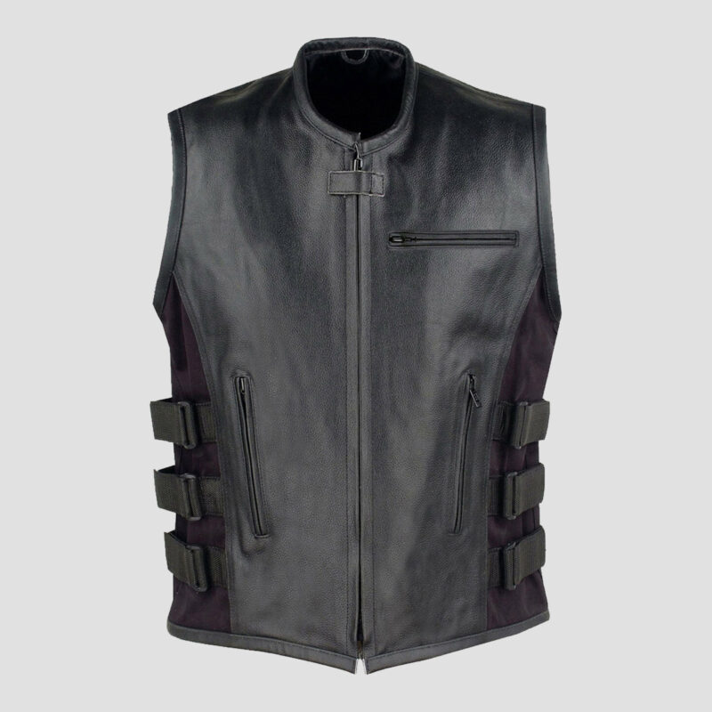 Armor Motorcycle Black Leather Adjustable Vest