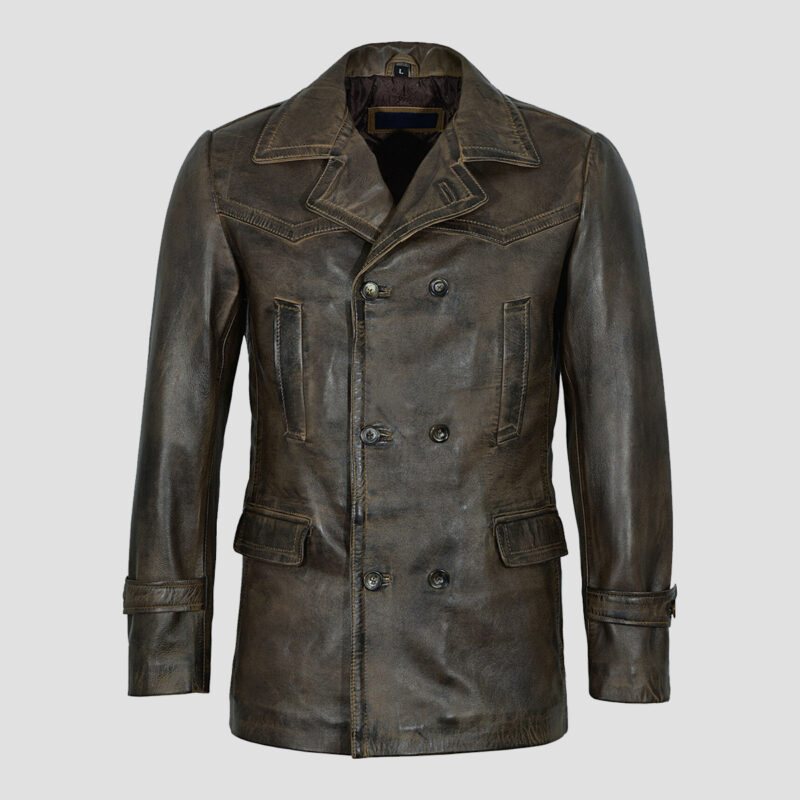 Waxed Brown Leather Naval Peacoat